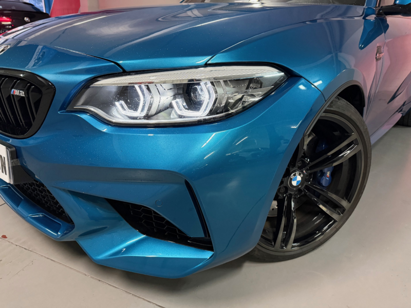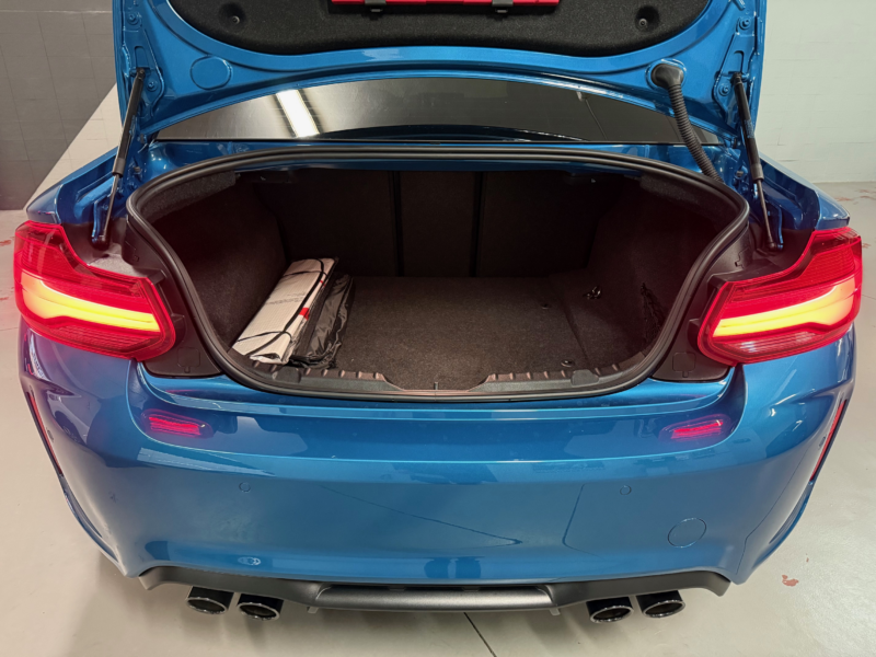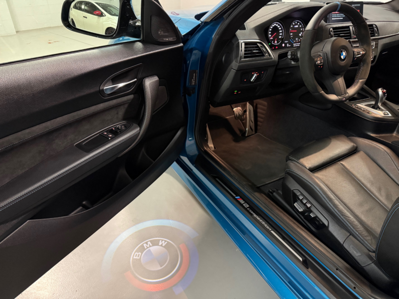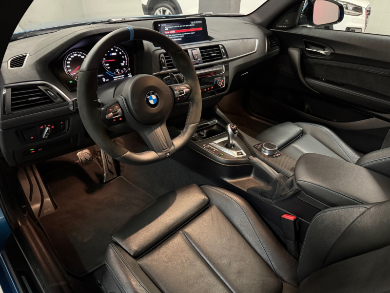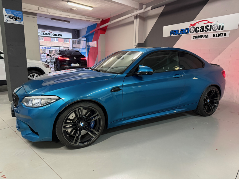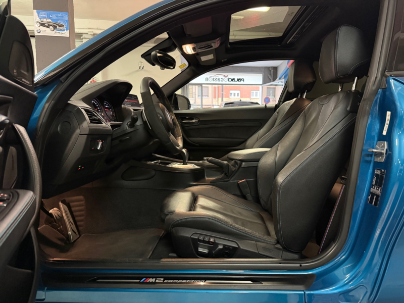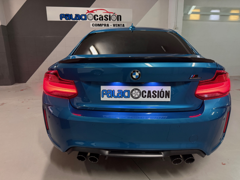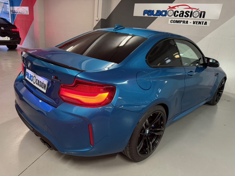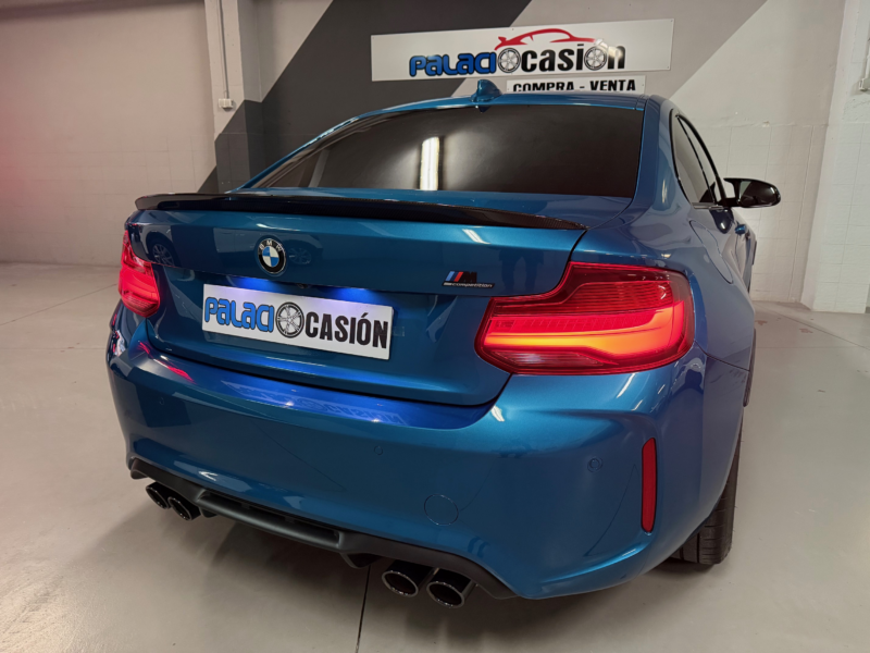 -BMW M2 Competition -Primera matriculación (Alemania) 09/06/2020 -Matriculado en España 15/12/2021 -Protección PPF en carroceria completa -Historial de mantenimiento Color: Long Beach Blau Tapicería: LCNL - Cuero Dakota Schwarz/pespunteado de contraste en azul Vehiculo 02MK Cambio con doble embrague M con Drivelogic 02PA Tornillos antirrobo para las llantas 02VB Control de presión de neumáticos 0230 Equipamientos adicionales especificos en la UE 03AG Cámara para marcha atrás 0302 Dispositivo de alarma con mando a distancia 0322 Acceso confort 04MC Molduras interiores Carbon Fibre 0403 Techo solar eléctrico. 0420 Acristalamiento de protección solar 0423 Alfombrillas de velours 0428 Triángulo de emergencia y botiquín de primeros auxilios 0430 Paquete de retrovisores interior y exteriores 0431 Retrovisor interior con ajuste automático antideslumbramiento 0441 Especificaciones para fumadores 0459 Reglaje eléctrico de los asientos, con memoria en el asiento del conductor 0465 Sistema